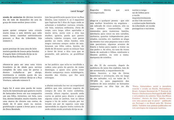 Carol Braga. -poema. Em: Volta para sua terra: uma antologia antifascista/antirracista de poetas estrangeirxs em Portugal. Ed. Urutau (2021).