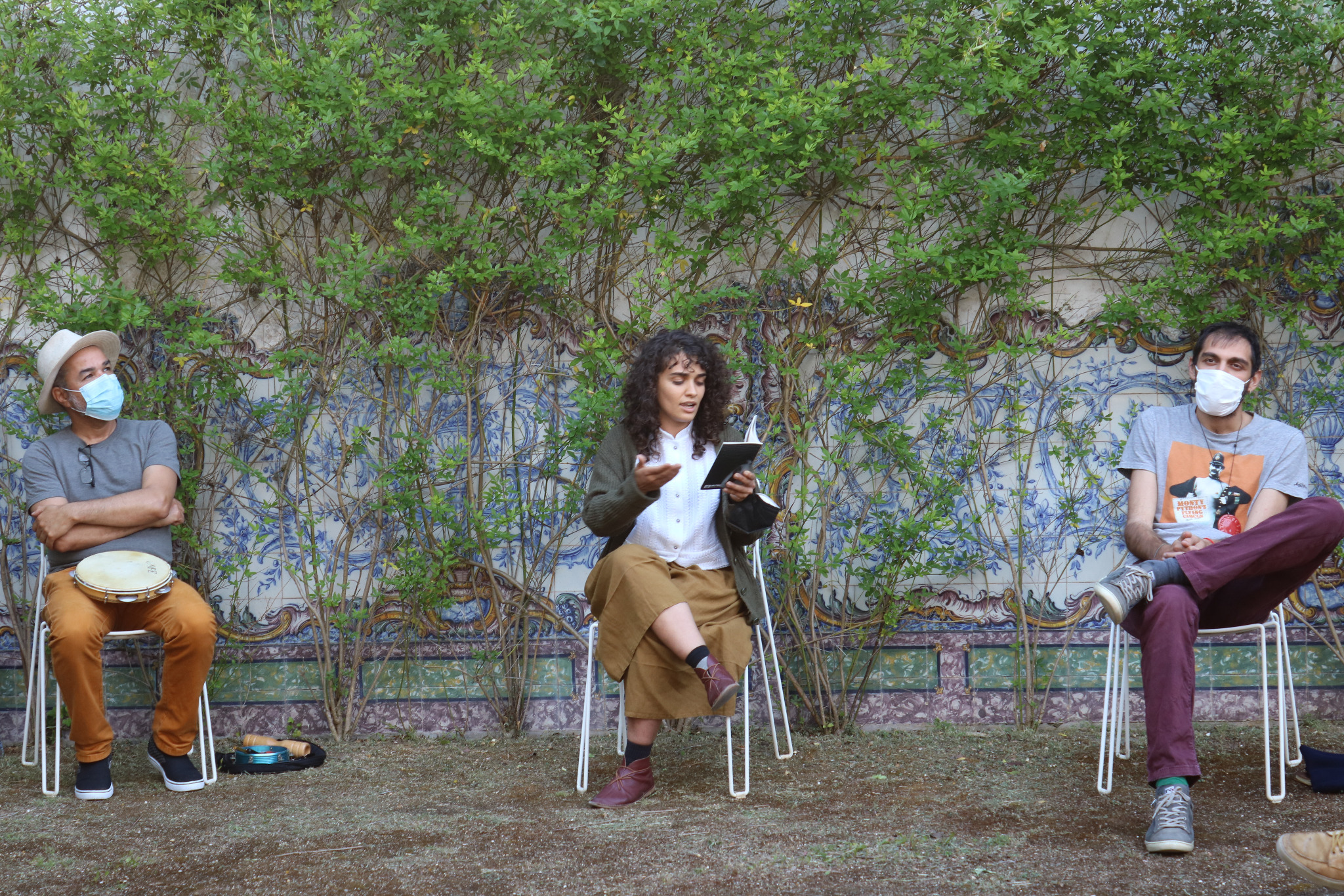 Realizadora da performance palavras são casa enquanto o corpo é encurralado na contradição em Setúbal, Portugal.